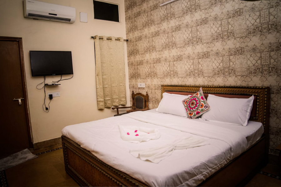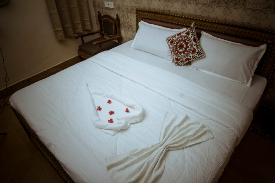 Our Deluxe Rooms are thoughtfully designed to offer a perfect balance of comfort, style, and functionality. Featuring elegant interiors, cozy bedding, and modern amenities, these rooms provide a relaxing atmosphere for both leisure and business travelers. Enjoy a peaceful stay with warm hospitality and all the essentials needed for a truly memorable experience at Jaisalmer Haveli.